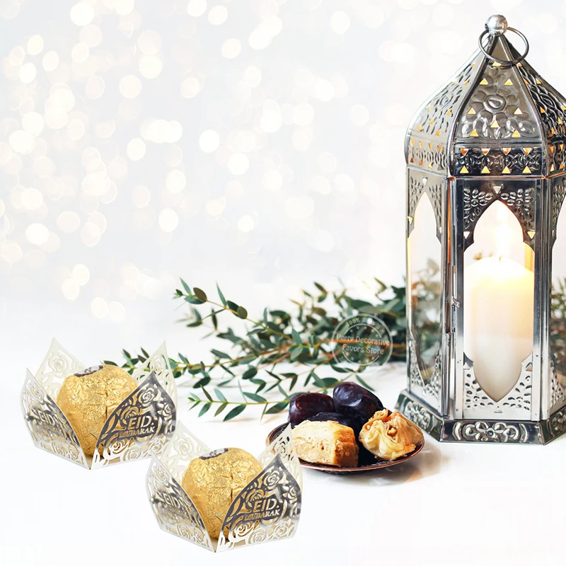 10-50Pcs Eid Mubarak Decoration Candy Food Tray Box