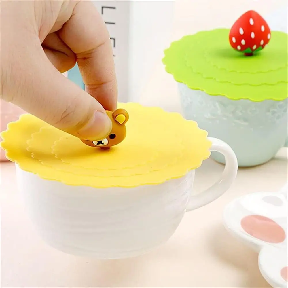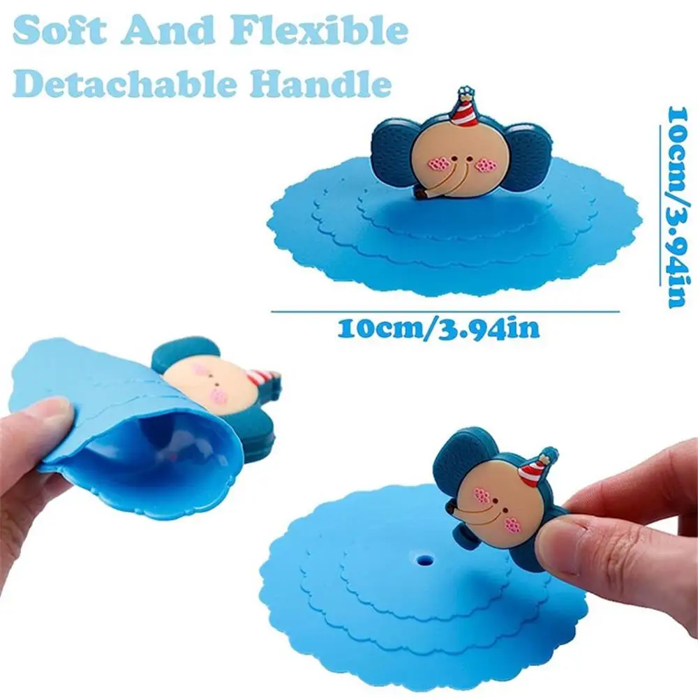 REUSABLE -- The diameter of the dust-proof silicone cup lid is about 10cm, which is suitable for most cups with a diameter of 10cm; the cartoon handle on the top of the lid is easy to remove, and the lid can be washed in a dishwasher, saving you cleaning troubles.