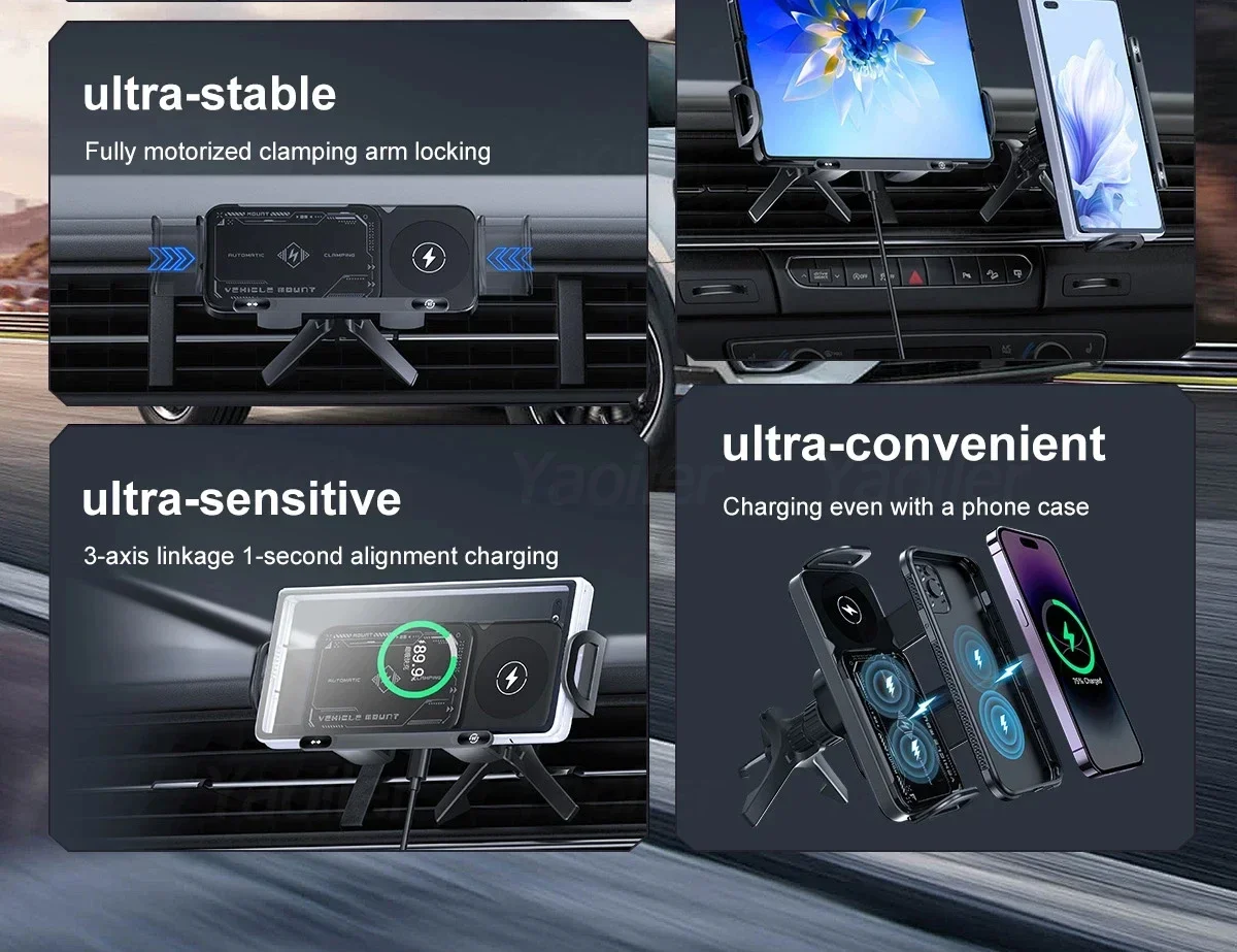 Car Wireless Charger Dual Coil Fold Screen Car Vent Mount Holder 15W Fast Wireless Charging for Samsung Galaxy Z 4 3-Fold Flip