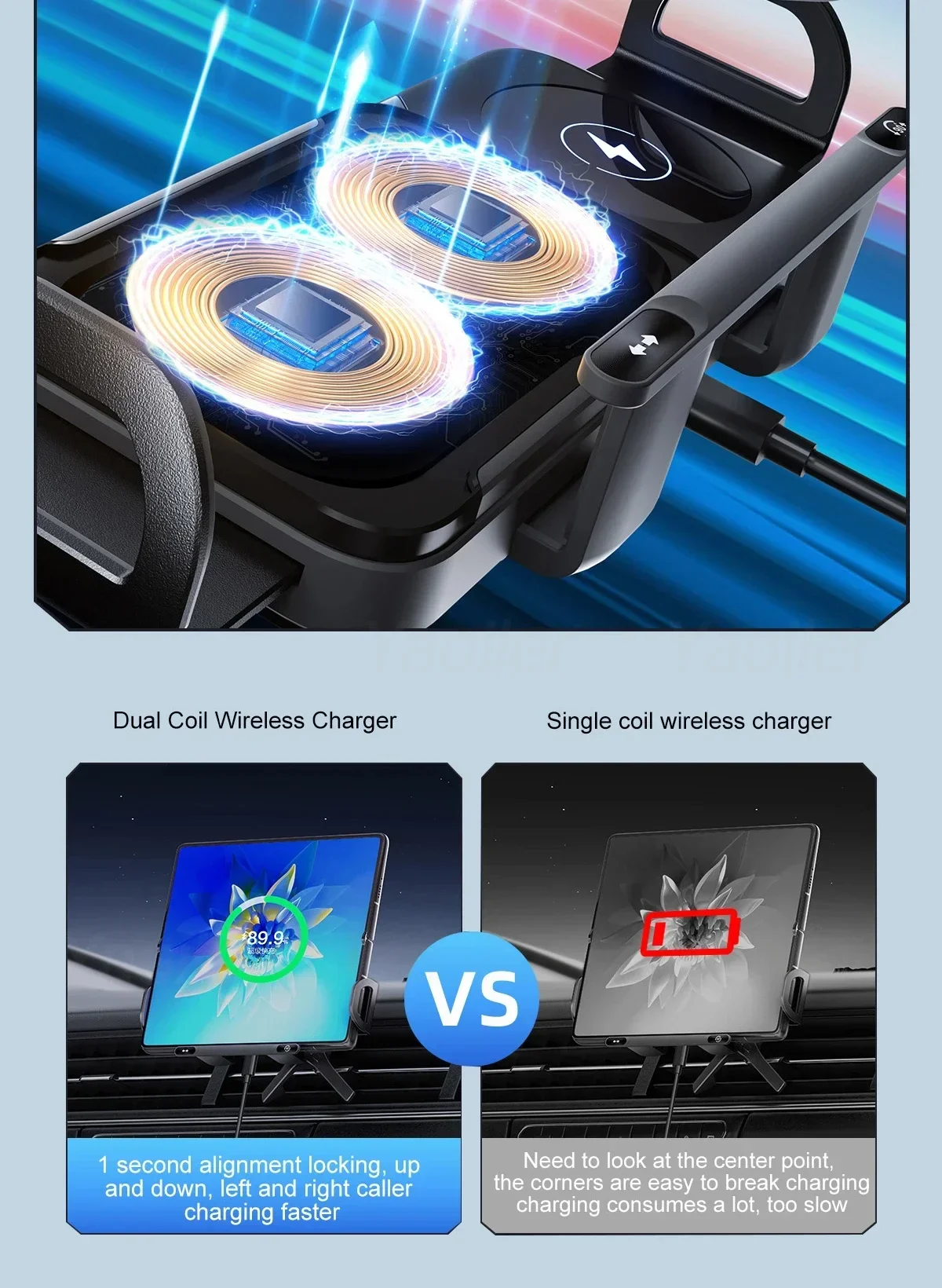 Car Wireless Charger Dual Coil Fold Screen Car Vent Mount Holder 15W Fast Wireless Charging For Samsung Galaxy Z 4 3 Fold Flip