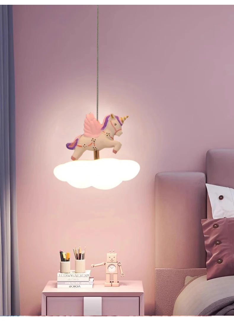 Cute Children's Room Colored Pegasus Chandeliers Cloud Lamps LED Warm Romantic Princess Room Girl Bedroom Bedside Chandelier