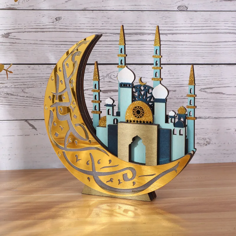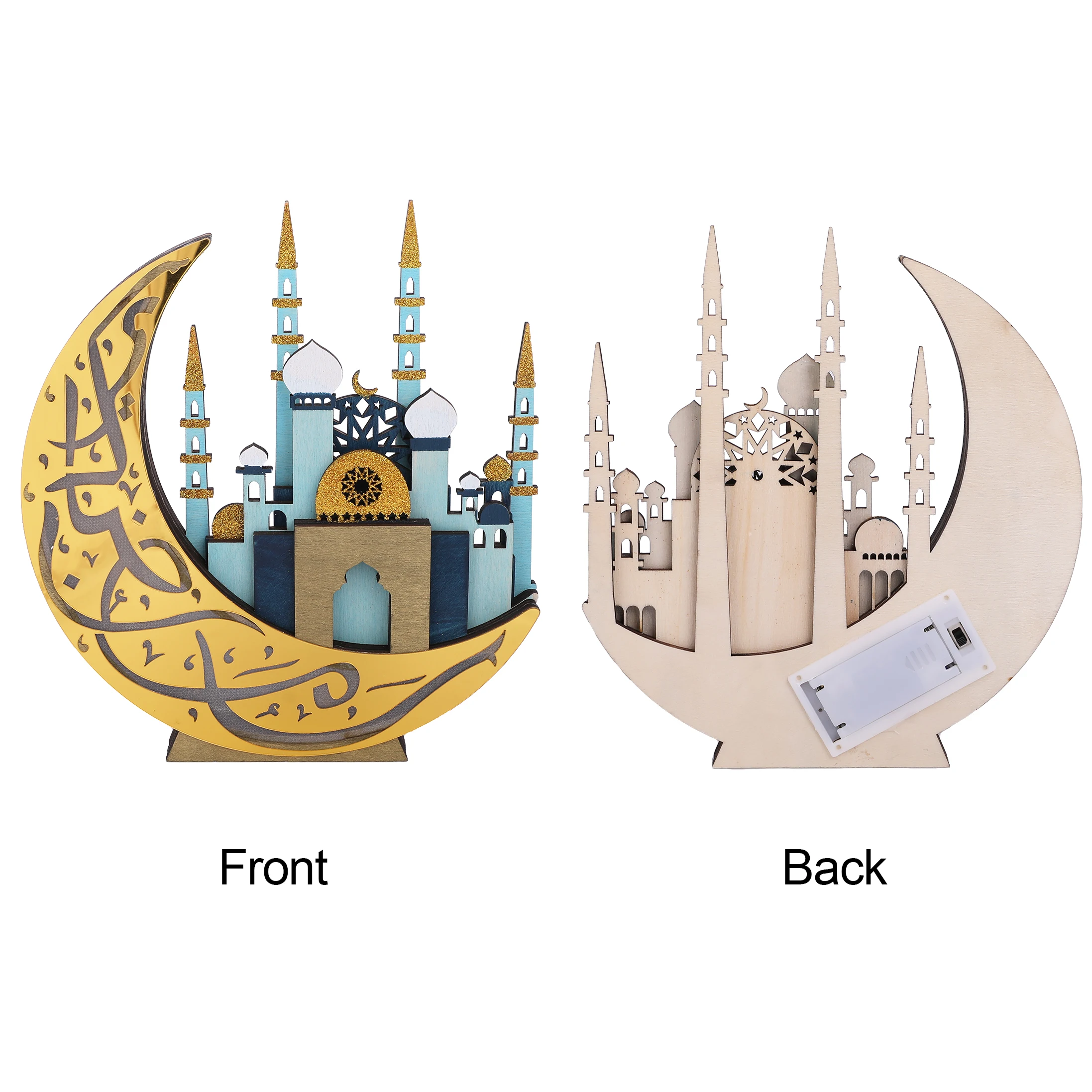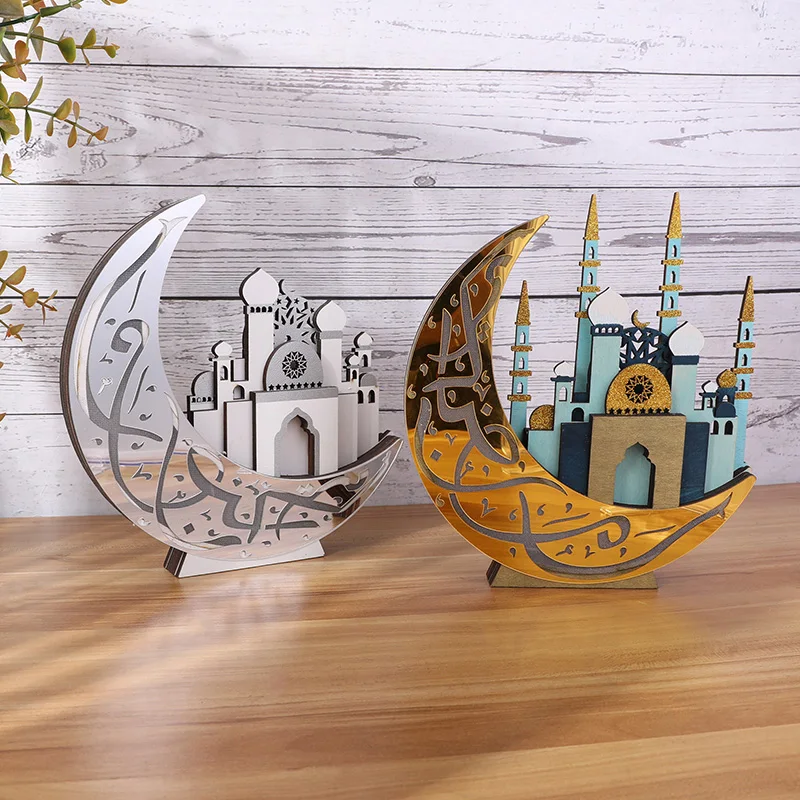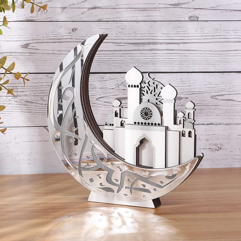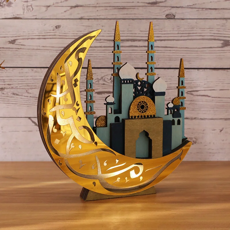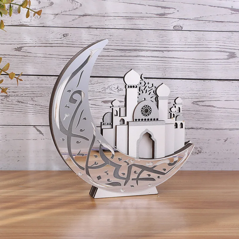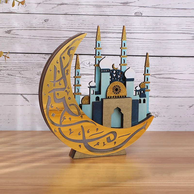 EID Mubarak LED Light Wooden Moon Mosque Table Ornaments