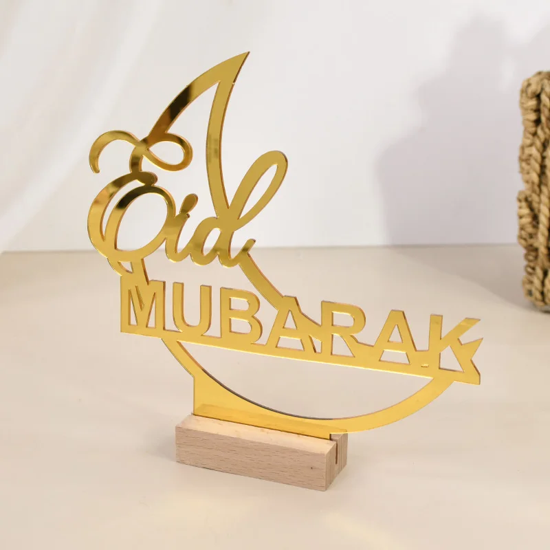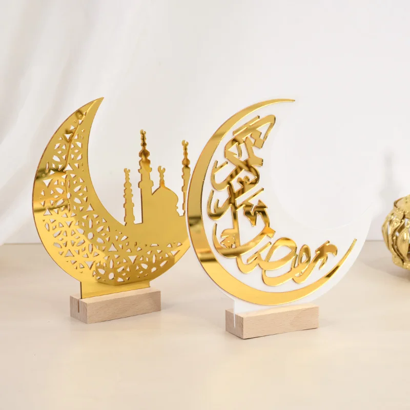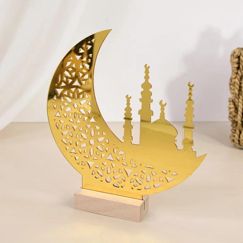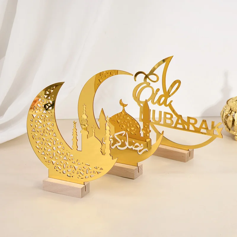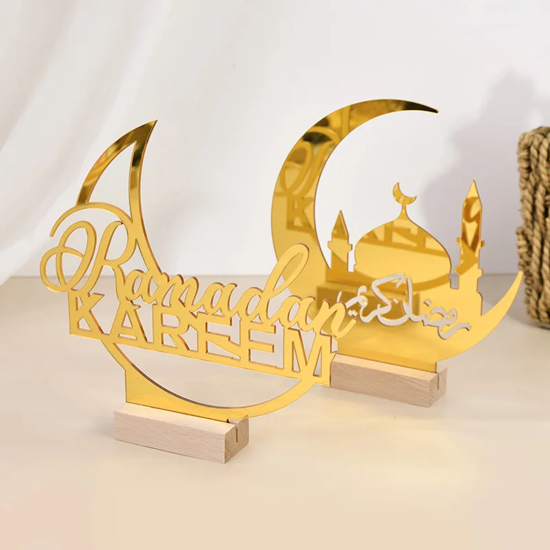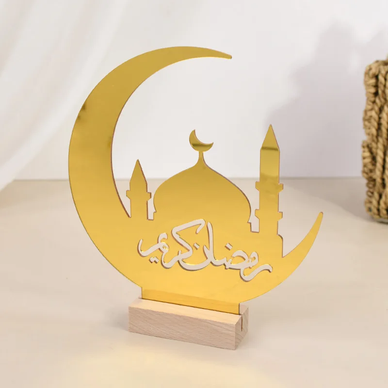 Eid Mubarak Moon Castle Acrylic Table Ornaments with Wooden Base 2025