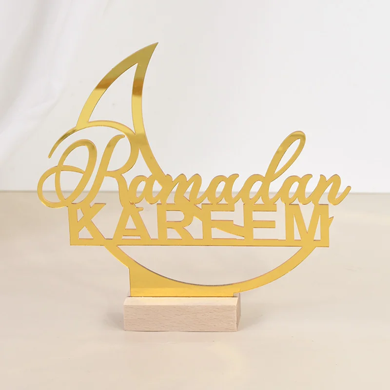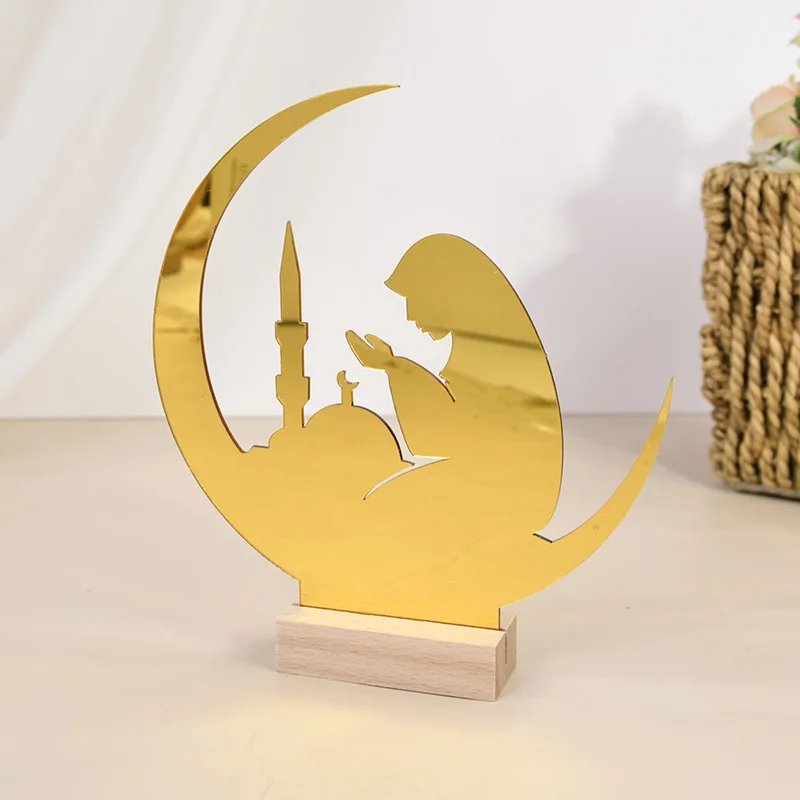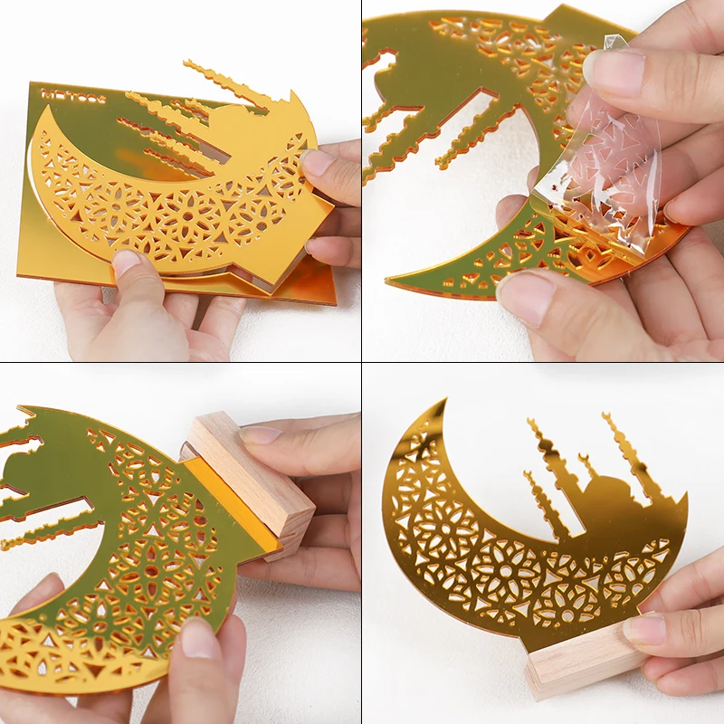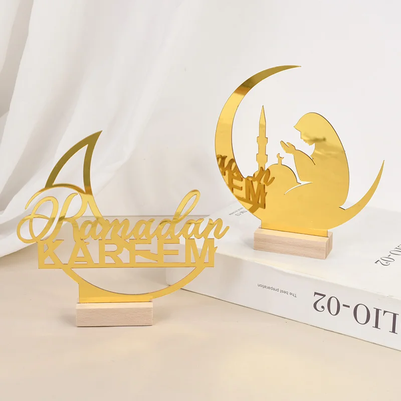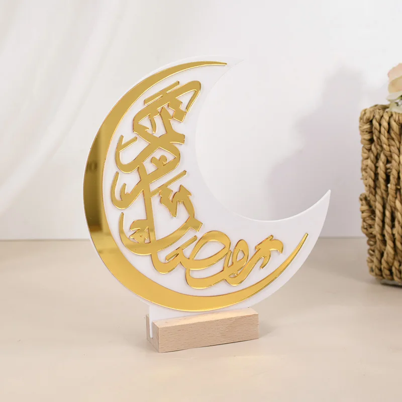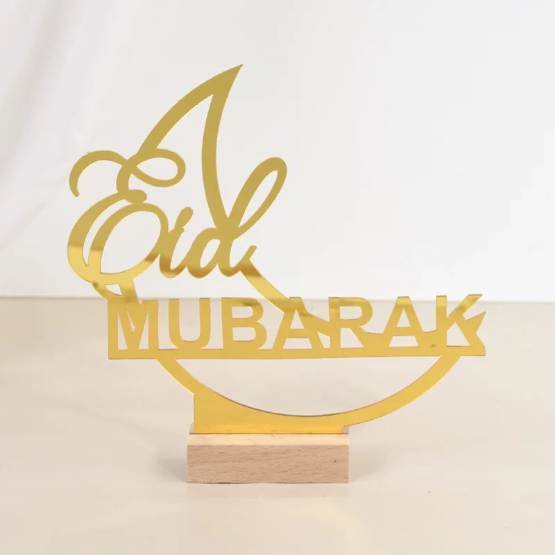 Eid Mubarak Moon Castle Acrylic Table Ornaments with Wooden Base 2025