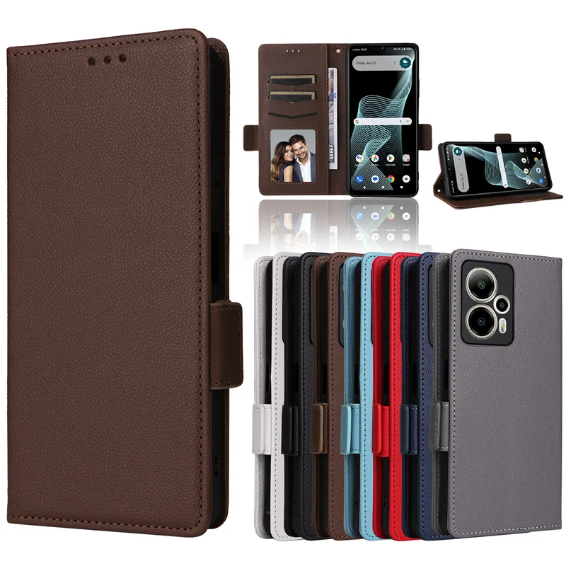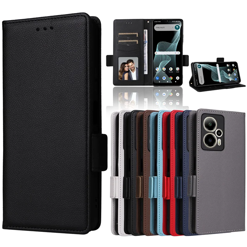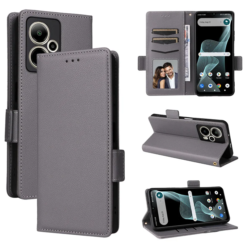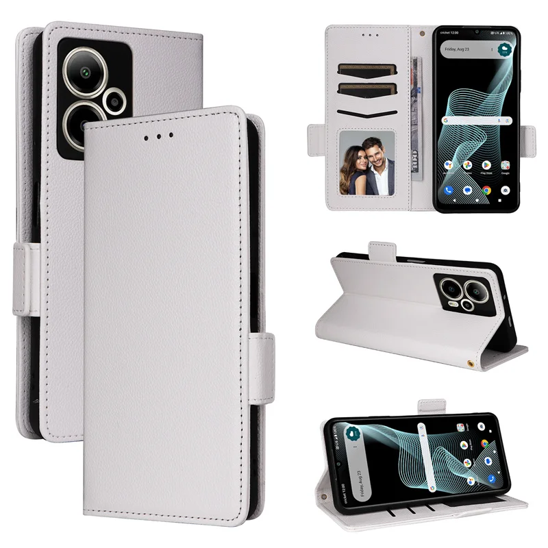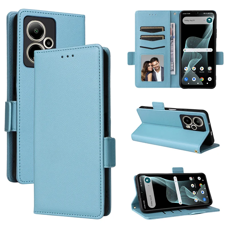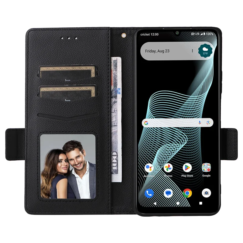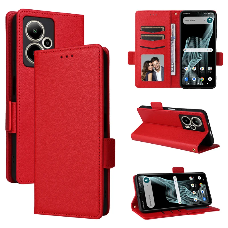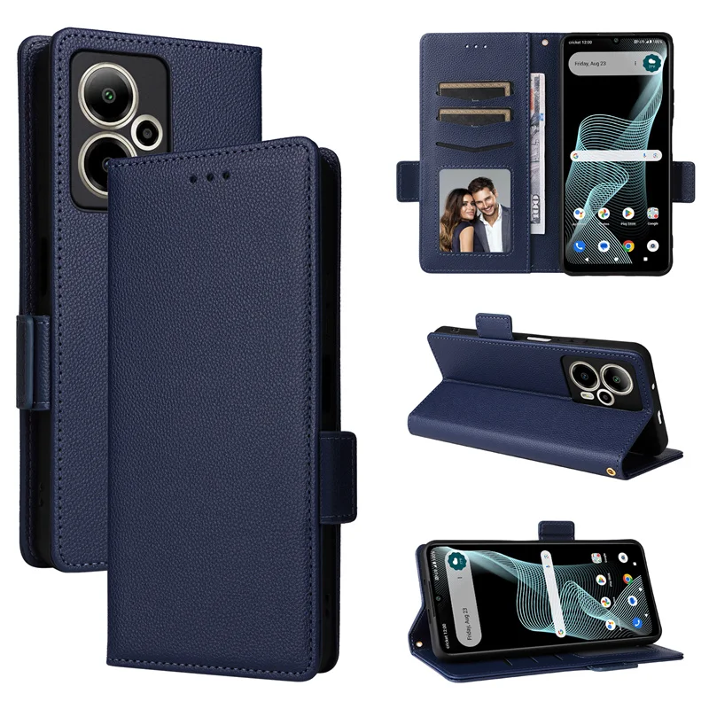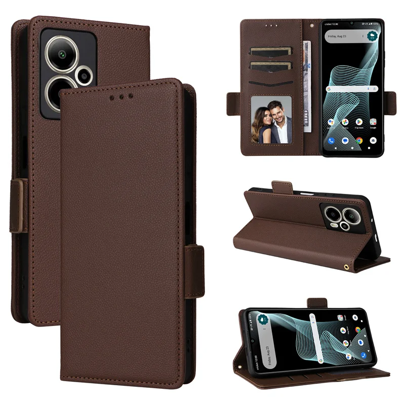 For Cricket Outlast 5G 2024 Side buckle lychee pattern leather cover wallet case purse for AT&T Motivate Pro 5G Magnetic Phone Cover