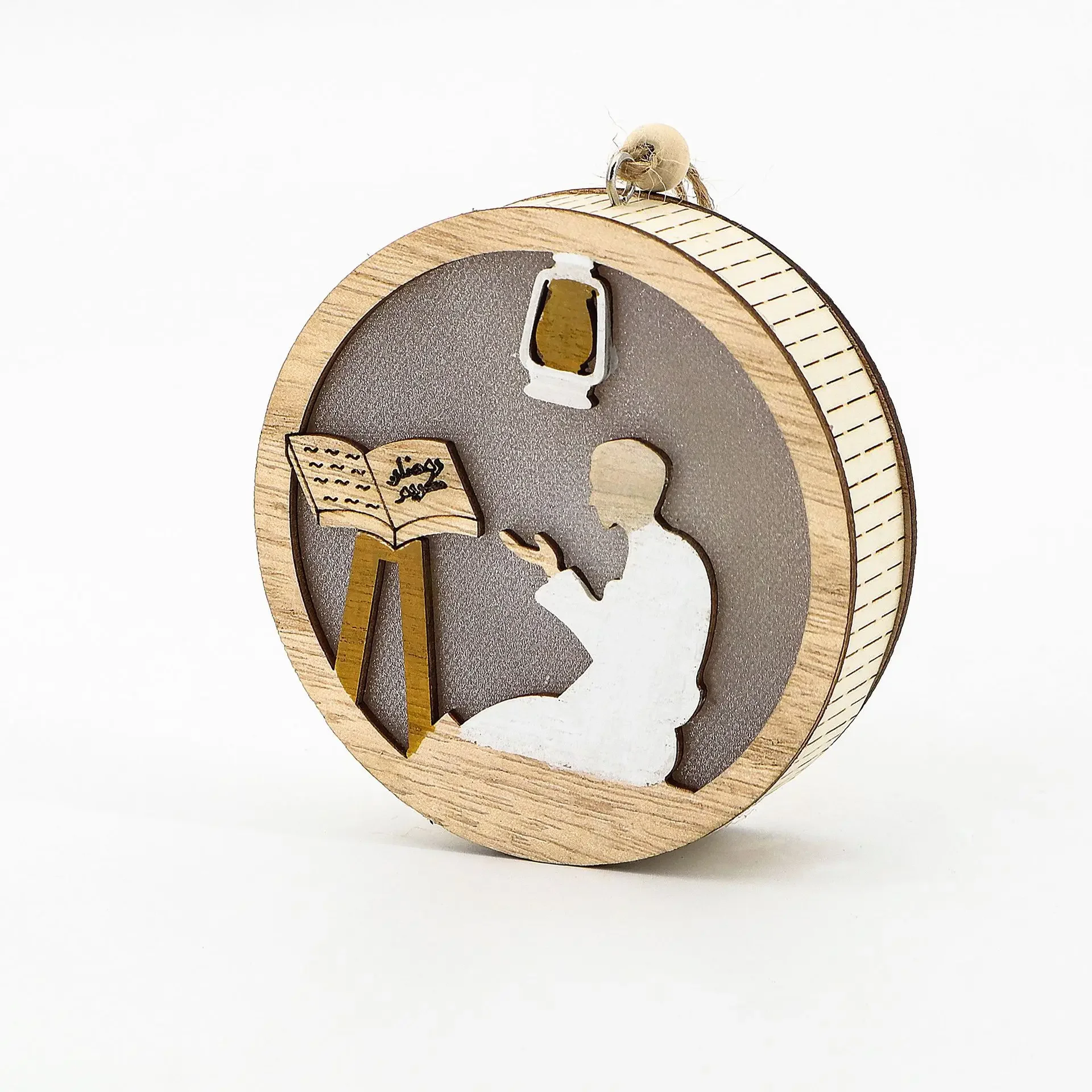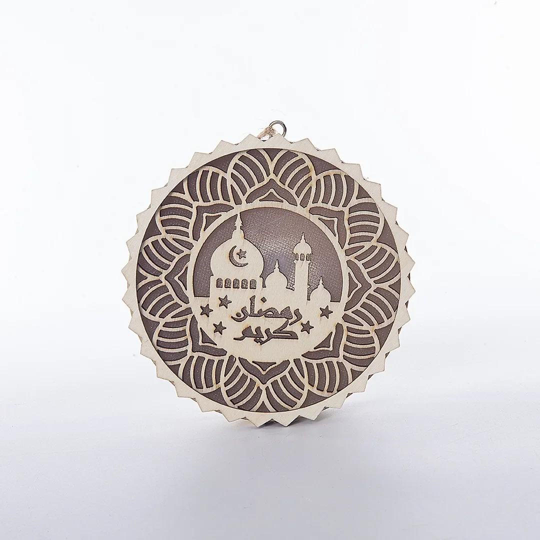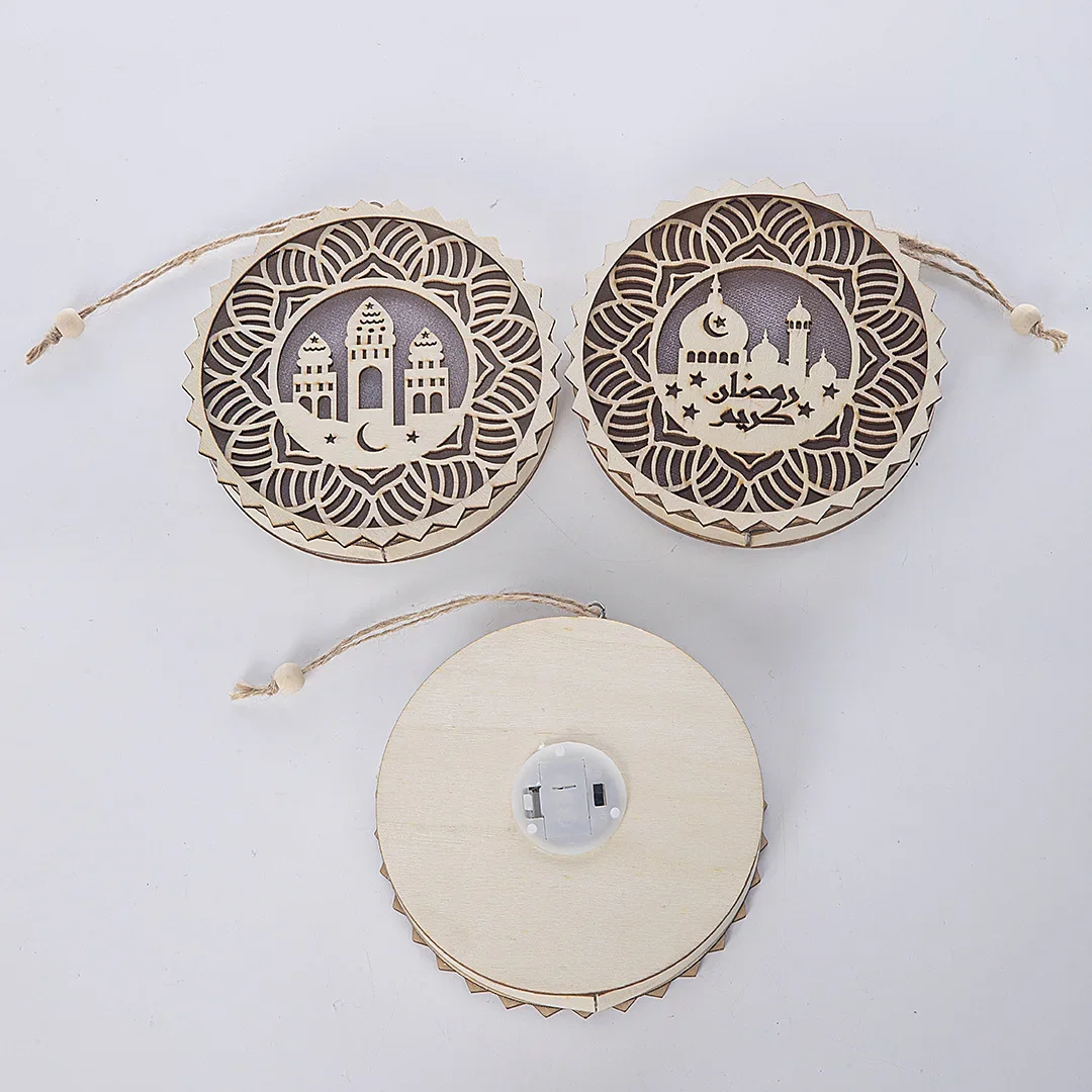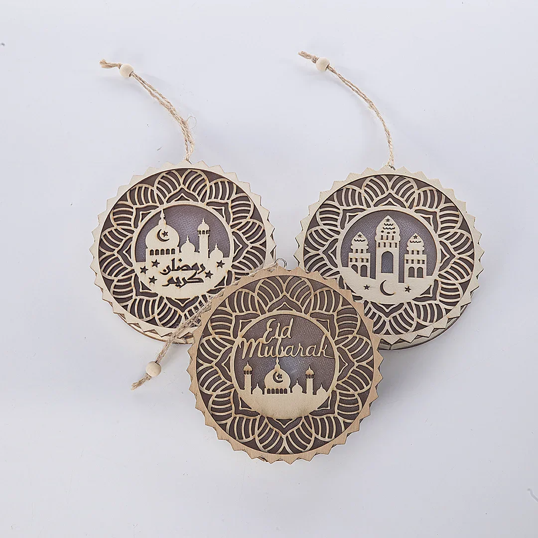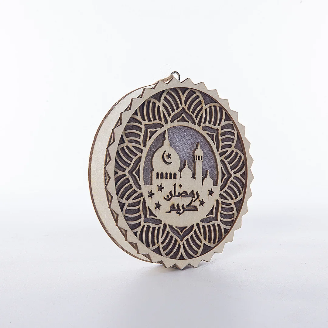 EID Mubarak Wooden Pendant with LED Light Ramadan Decorations