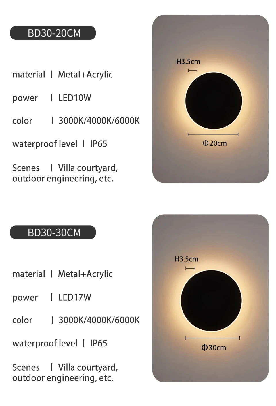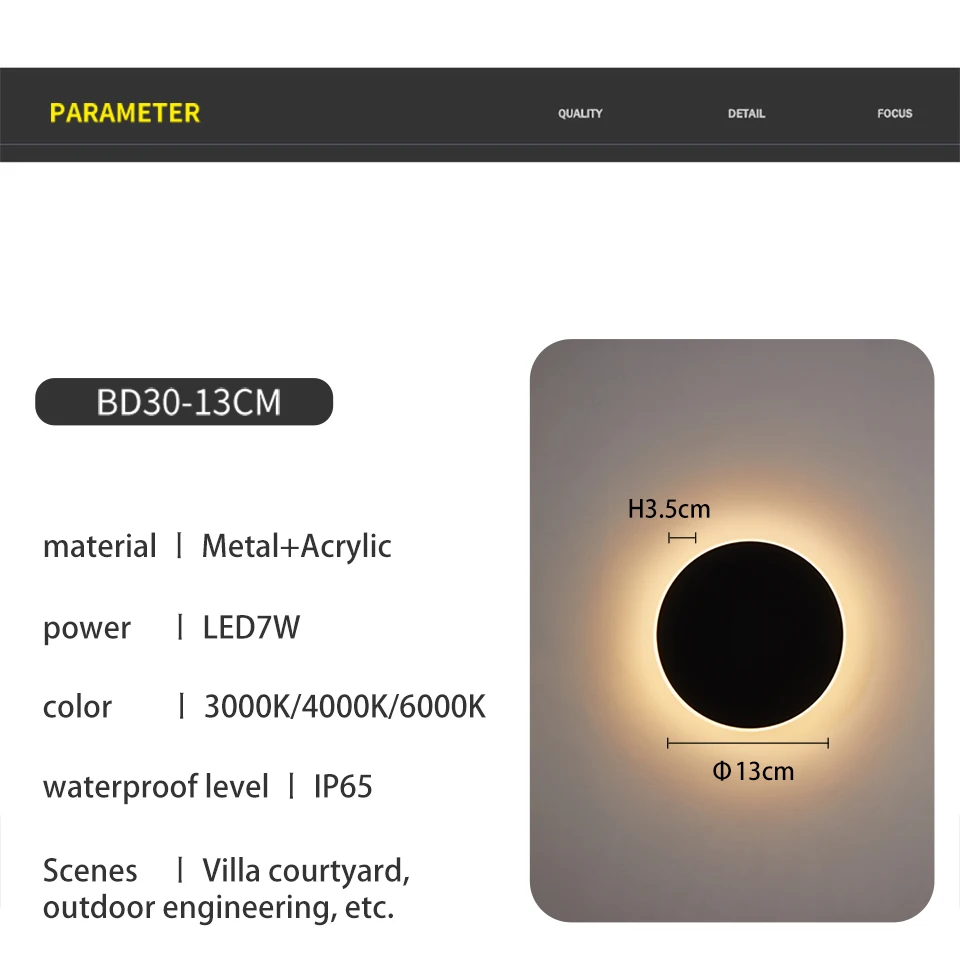 LED Lighting Modern Simple Circular Wall Light Waterproof