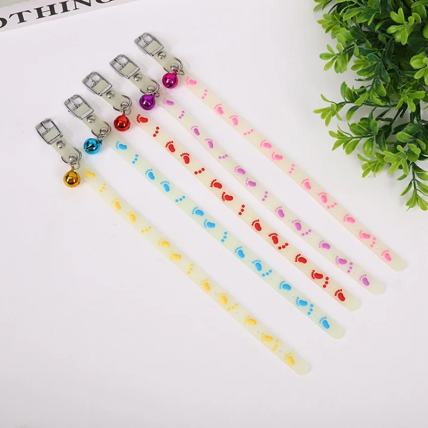 Luminous Cat Necklace Glowing Small Dog Cat Collar Anti-Loss Fluorescent Silicone Cat Bell Collar Neck Ring Pet Pets