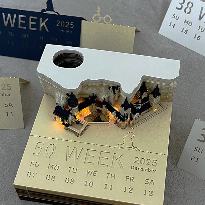 2025 Creative Hogwarts Magic Castle Calendar Sticker with Light 3D