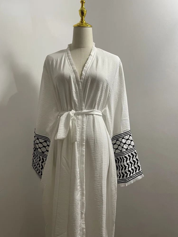 new Soft Crepe Embroidery Palestine Keffiyeh Abaya