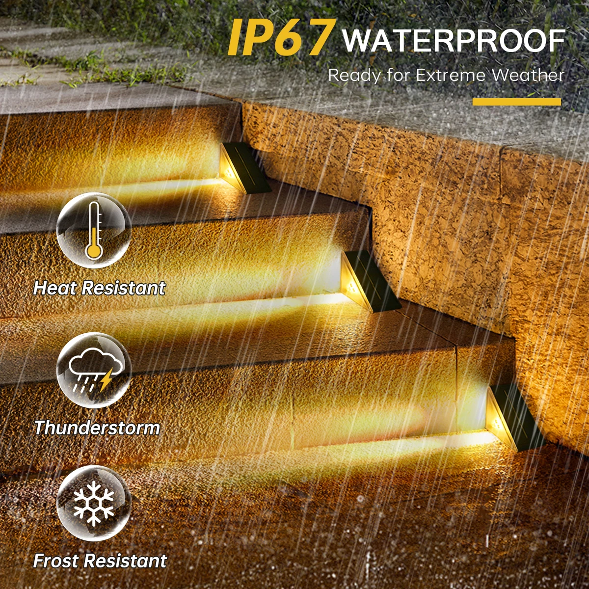 Solar Stair Lights Solar Step Light Outdoor Anti-Theft Waterproof IP67 Decor for Garden Stair Deck Front Porch and Patio