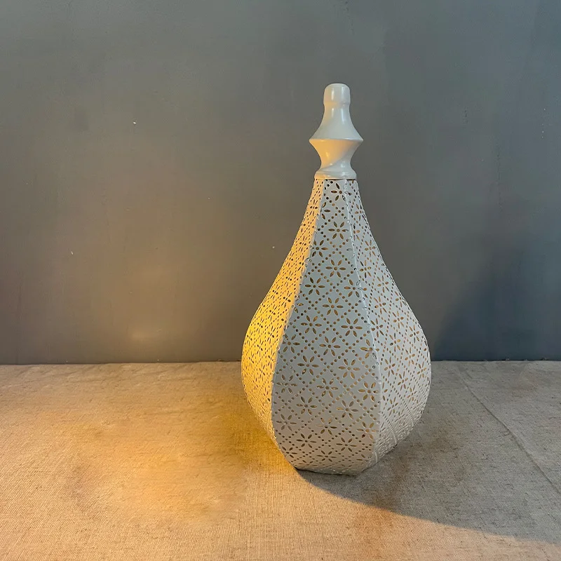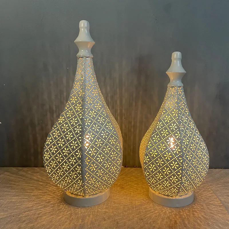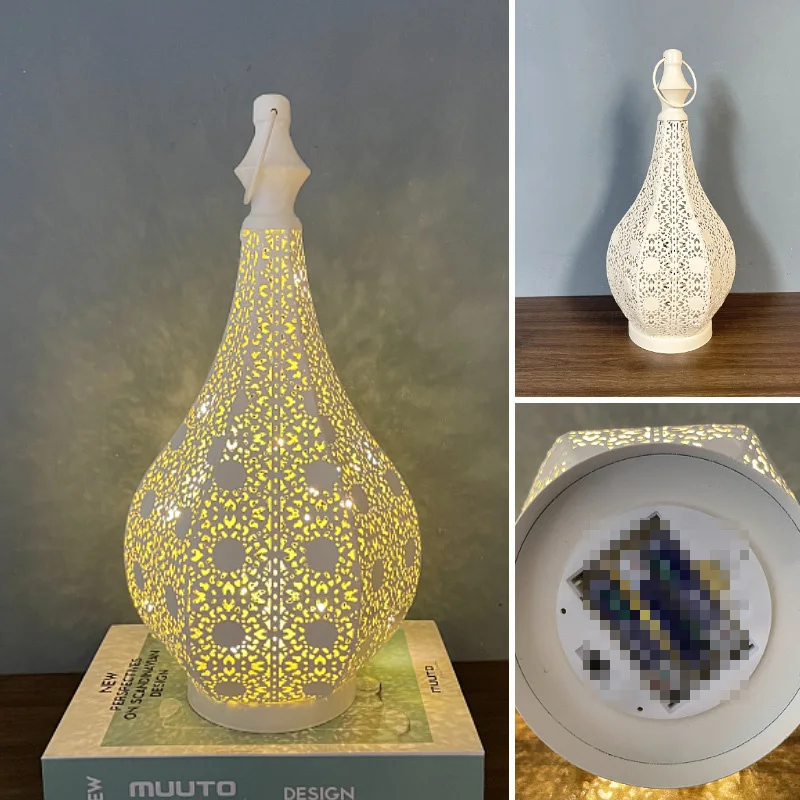 White Hollow LED Wind Lamp Lantern Home Table Decoration for EID Mubarak Ramadan Kareem