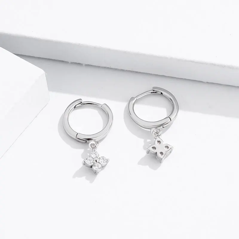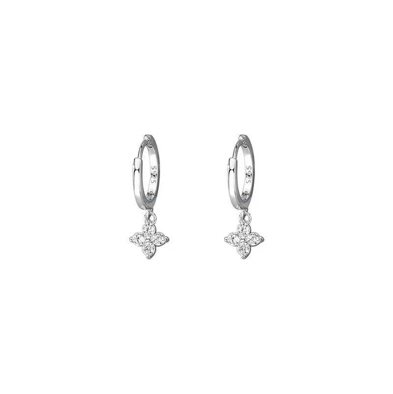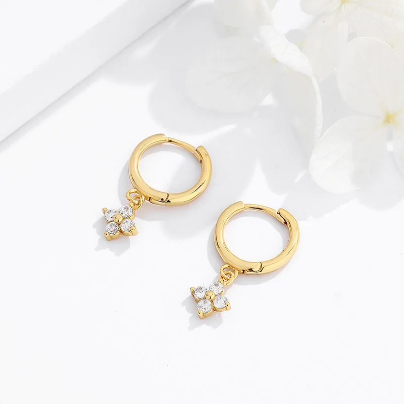Zircon Flower Pendant Hoop Earrings
